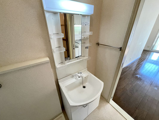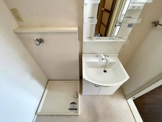 洗濯機置場と洗面台がある脱衣所〜