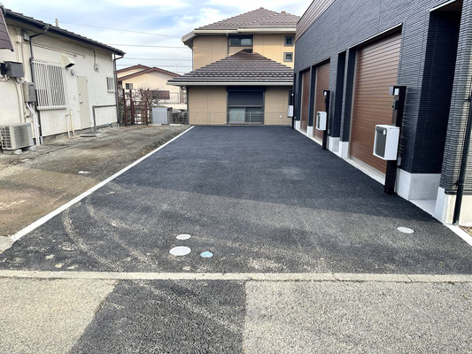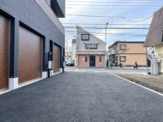 建物前面のアプローチも広々しているので車庫入れもスムーズに出来そう♪