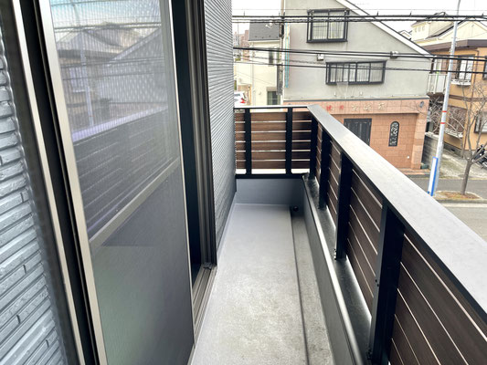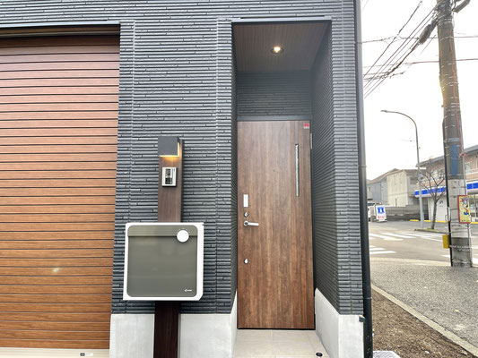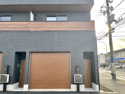 ブラックの外壁とシャッターやベランダのウッド調がカッコいい〜