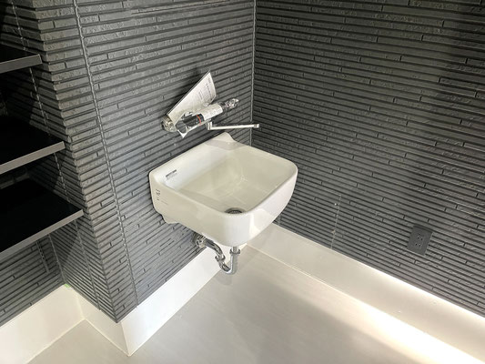 ガレージ内にはお湯も出る水栓やEV用電源もあります。
