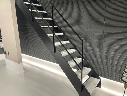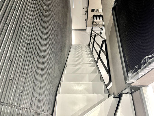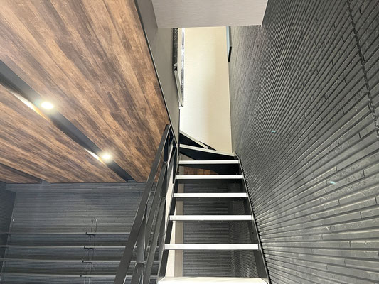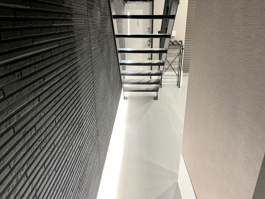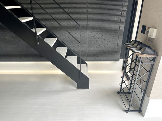 入って正面の階段はスケルトンなのでガレージも広く感じますね〜