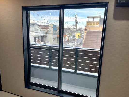居室の仕切りドアはフローティングのスケルトンブラック!