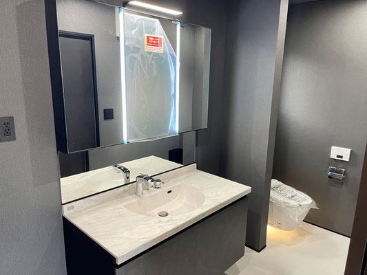 洗面台も大きくて女優ライト付き!